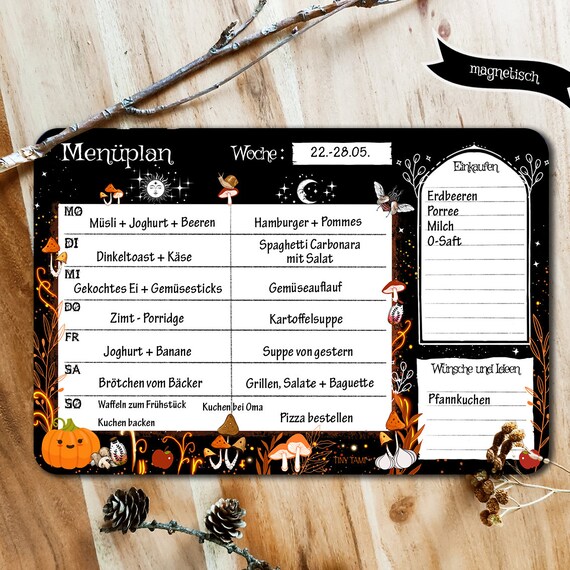 Witchy Menu Planner Whiteboard Magnetic Sign DIN A4 Etsy